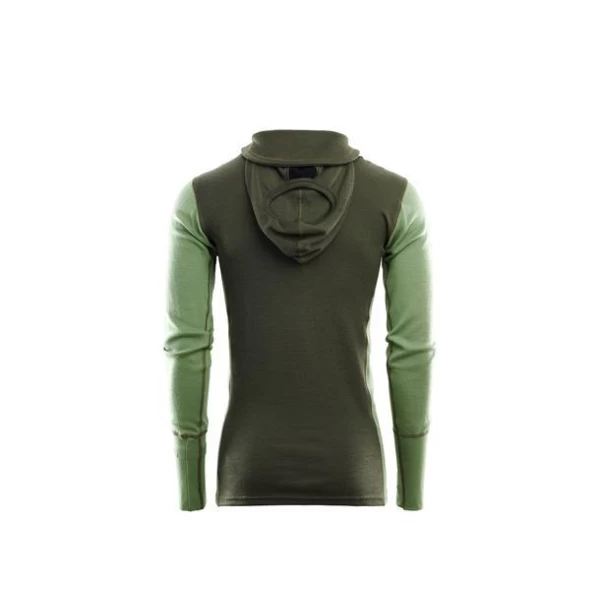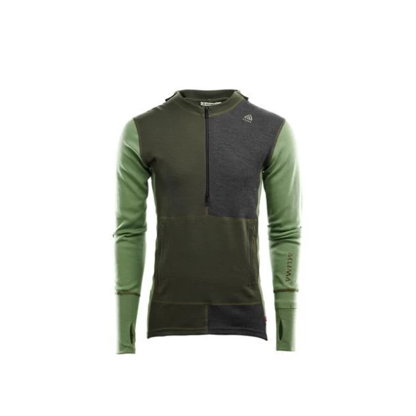 Aclima WarmWool Hoodie med glidelås er en av Aclimas mest populære hettegensere. Med den funksjonelle treveis hettefunksjon kan du velge mellom rund hals, polo eller dekke til hele hodet med den integrerte balaklavaen. I front på balaklavaen er WoolNet intergrert for å forhindre isdannelse. Med toveis glidelås på brystet kan man raskt bli kvitt overskuddsvarme, og lukke igjen når man blir kaldere. Ved å bruke tommelhullet ved håndleddet holder du genseren på plass og unngår en glippe som slipper til kald luft. Den har en smal passform og egner seg godt som baselayer på kalde dager, med ribbestrikkede felter i siden for bedre komfort og bevegelse. Du kan putte hendene i en varmelomme med glidelås på magen. Du har enkel tilgang til smartklokken for hettegenseren er designet med en praktisk klokkeåpning på venstre arm. WarmWool stoffet er strikket, noe som gjør at det er elastisk og lunt. Det er 100% merinoull og vekten er på 200 gram per kvadratmeter. Fiberne som brukes i WarmWool er på 20.5 micron, det er mykt og godt å ha innerst mot huden. WarmWool egner seg som baselayer mot huden eller som lag nummer to når været er veldig kjølig.