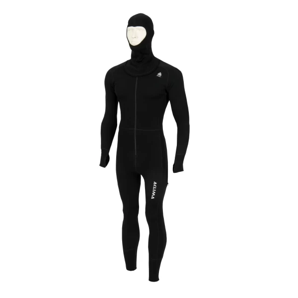 WarmWool Overall er en hel dress i merino ull. Glem alt som heter ulltrøye, ullongs og lue når du skal i skibakken. Aclima laget den første heldressen i ull på markedet. Et fantastisk plagg der man slipper glippe mellom trøye og longs. Produktet har toveis glidelås i front, samt glidelås rundt baken og ned på lårene. I tillegg har overallen tommelgrep for å varme hendene. Med samme design som våre hettegensere kan man velge mellom, rund hals, høy hals eller balaklava. Et revolusjonerende produkt for alle som vil ha det enklest mulig, ullfibrene gjør at den holder varmen selv om den blir våt. WarmWool stoffet er strikket, noe som gjør at det er elastisk og lunt. Det er 100% merinoull og vekten er på 200 gram per kvadratmeter. Fiberne som brukes i WarmWool er på 20.5 micron, det er mykt og godt å ha innerst mot huden. WarmWool egner seg som baselayer mot huden eller som lag nummer to når været er veldig kjølig.