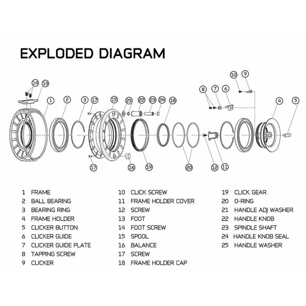 De to store keramiske PEEK-kulelagrene gjør snellen jevn og stabil.