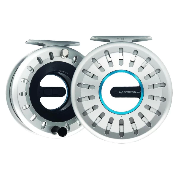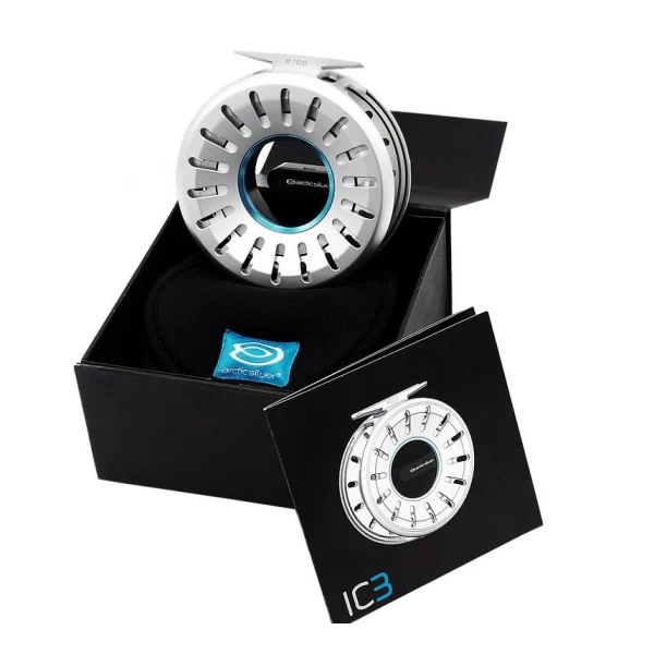 Arctic Silver IC3 Hubless Flyreel. Arctic Silver har kun produsert 200 sneller i klasse 7/8. Dette er Limited Edition nummererte sneller. Hubless-konseptet kjenner mange fra blandt andre norske Backwinder. Arctic Silver har gjennom en lang prosess videreutviklet konseptet og tilført overløpsbrems med klikker, som gir en distinkt lyd. Det følger med to ekstra klikkere, én myk og én hardere slik at man selv kan sette den opp etter ønske.