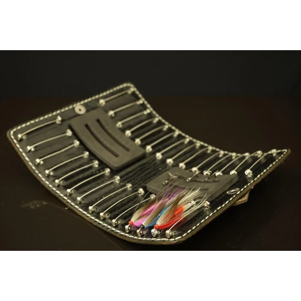 1. The sides of the wallet are hardened with my patent protected invention, therefore fly wallet maintain nice shape of ellipse and protects the flies from being squeezed. Patent No. 1989.
