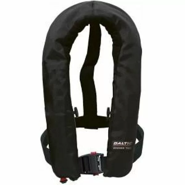 Med automatisk eller manuell oppblåsning. Midjebånd med rask spenne, behagelig fleeceforet krage og munnventil for oppblåsing og tømming av flyteelementet. Seks reflekser, fløyte og løftehåndtak. Gasspatron 33g CO2 med en oppdrift på 150N.