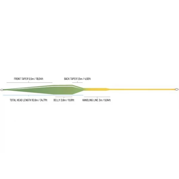 Fario Elite har en forholdsvis lang front tapering på 5,5m som gir en jevn- og presis kraftoverføring fra klumpen gjennom spissen og ut i selve fortommen. En viktig egenskap for fluesnører som er rettet mot imitasjonsfiske med lette- og presise nedlegg. Selve bellyen og vekten ligger konsentrert bakover slik at du har mest mulig masse og vekt konsentrert nærmest stanga, en avgjørende faktor for at en flueline skal være god til vannkast. Baktaperingen på 1,5 meter er etterfulgt av 3 meter handling line som gir god stabilitet i luften for kasting med rikelig overheng og en stabil linebukt som holder kastet ut. Handling line gir også en sterk overgang mellom klump og skyteline som er veldig utsatt under kasting. Kommer med løkke i begge ender og id-merking i front.