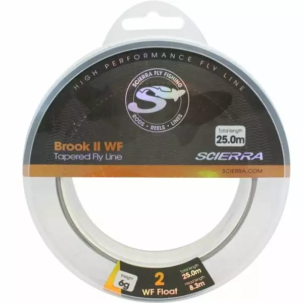 The “Scierra BROOK II” is a series of five short-headed floating WF-lines (# 2-6) that are designed to fish smaller rivers (or brooks) and other kinds of cramped fishing conditions.