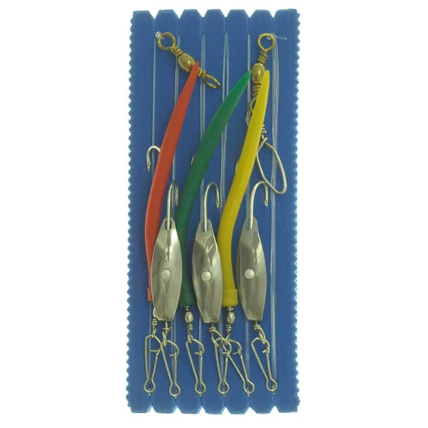 Kroksettet passer til Sølvkrokens Fiskeharpa. Det har hvirvel i den ene enden og hempe i den andre, og er svært enkel å feste til snøret. Tre blanke rykk og tre gummimakk fra Sølvkroken. Krokstørrelse: 2/0.